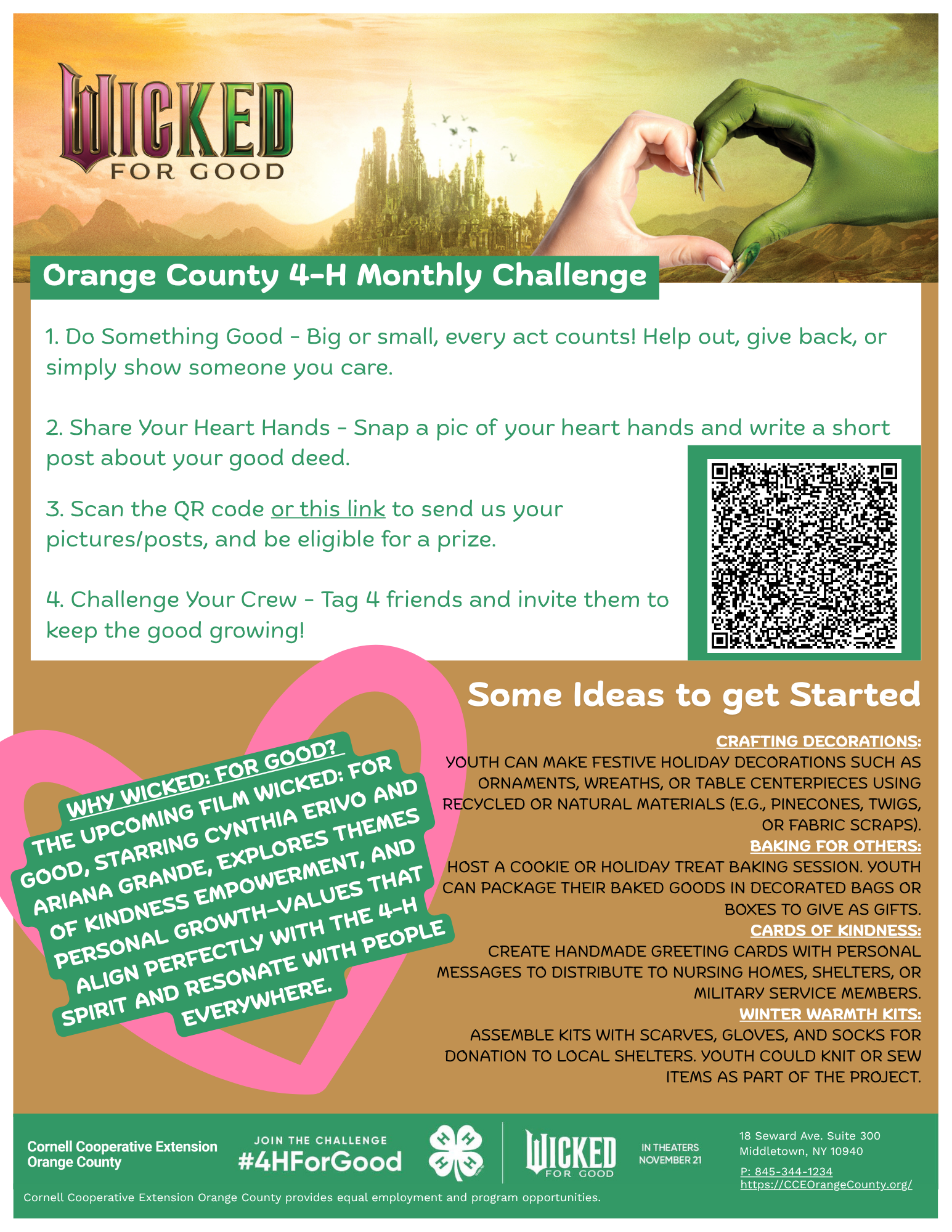 Join the “For Good Challenge” with Wicked: For Good and 4-H and be part of a movement to create a kinder world in your school, workplace, or community.