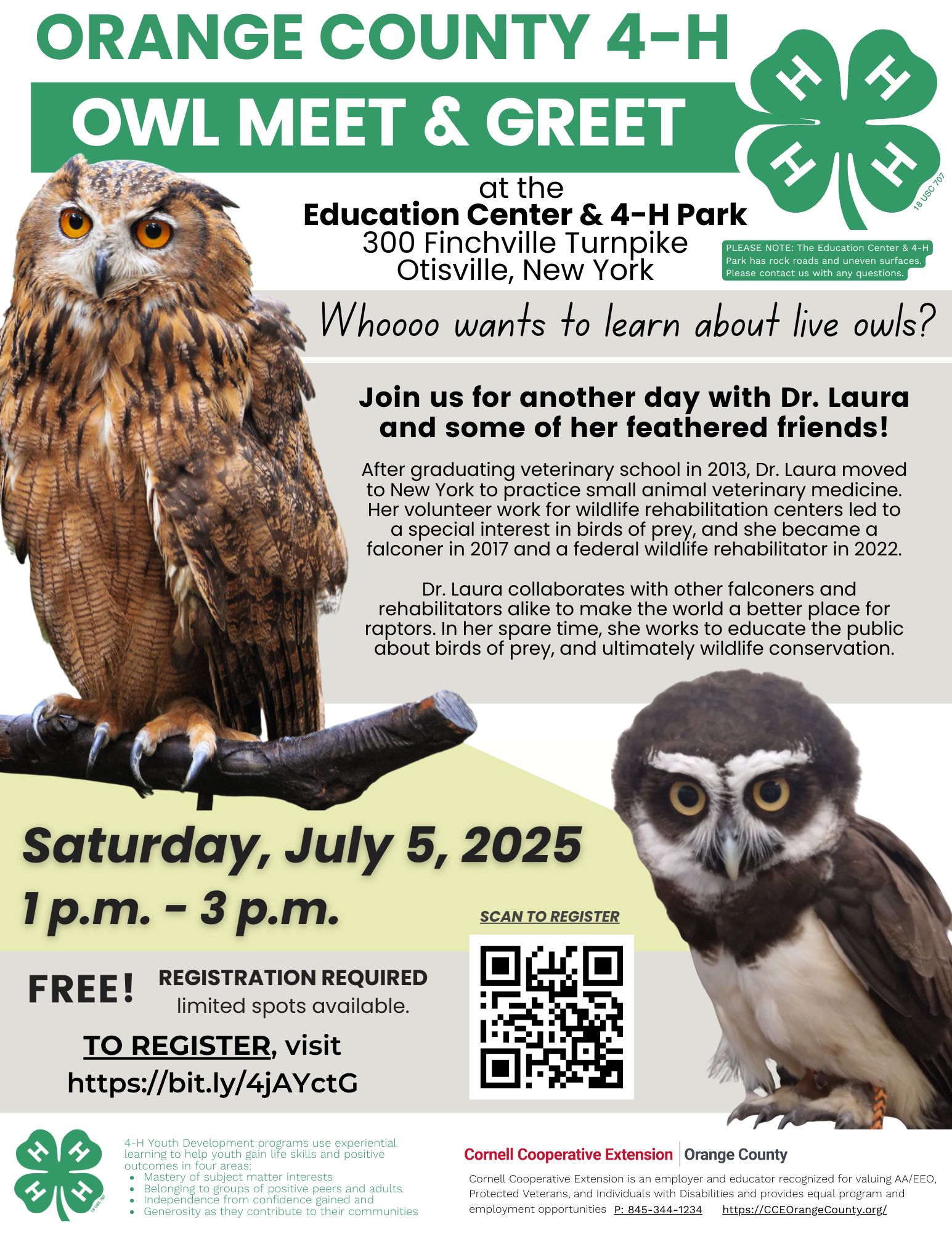 REGISTER HERE Join us for two fun and informative evenings designed to help youth in the 4-H Livestock Programs prepare for the 4-H Calf and Livestock Sale! Learn how to confidently promote the program, reach out to potential bidders, and showcase the hard work you’ve put into raising your animals. We’ll cover practical marketing skills—like creating buyer letters, making connections in your community, and sharing your 4-H story—to help you attract new and returning supporters. For 4-H Calf & Livestock Sale participants only. You MUST be enrolled in Orange County 4-H to participate. Questions? Email zoe Nafis at zrl7@cornell.edu |