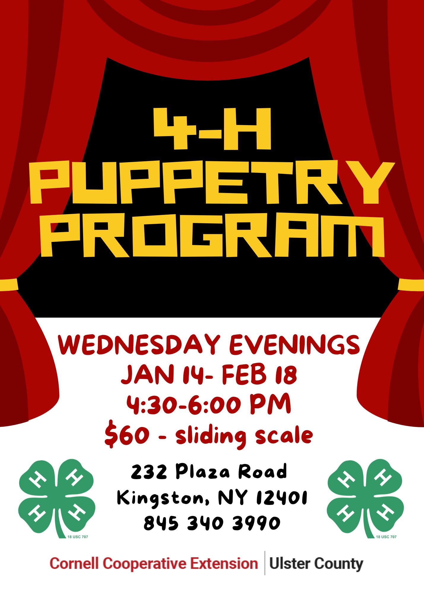 REGISTER HERE!!! Join us for a hands-on, imagination-fueled journey into the world of puppetry! Over the course of six sessions, youth participants will learn the art of puppet design and performance, culminating in the creation of their very own hand-and-rod foam puppet. This workshop series will explore basic puppet construction, character development, and performance skills. The final session will feature a short showcase where participants bring their creations to life in front of an audience! Dates and Times: January 14th, 21st, 28th February 4th, 11th, 18th |